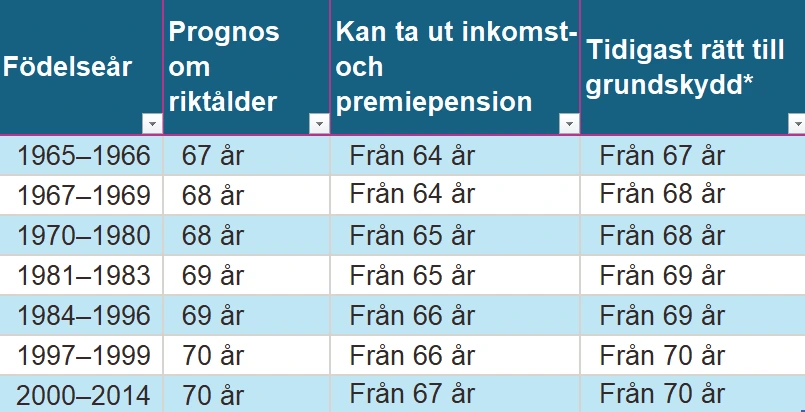 Här kommer prognosen på när övriga åldersgrupper ska gå kunna få i pension.